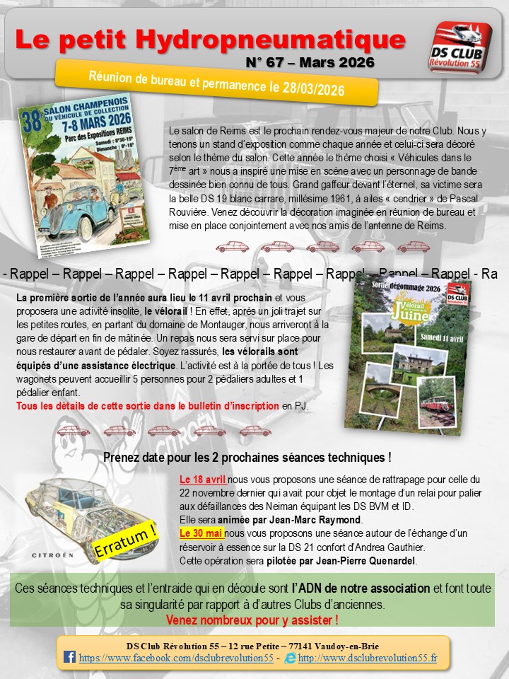 Vous y trouverez des informations utiles, des photos de la vie du Club et des partages en rapport avec la DS / ID en particulier et la marque Citroën, voir même le monde automobile, en général.
